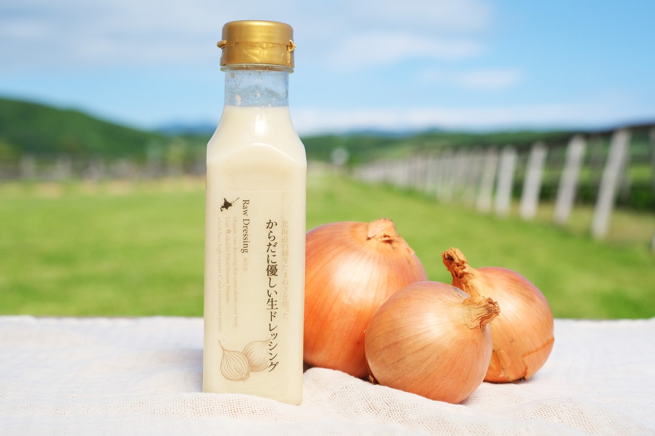 創業当時より変わらない人気のドレッシング。伊達産の有珠山の麓で333日かけてじっくり育て上げた栄養価も満点の甘みの強い玉ねぎ「えったま333」を使用したドレッシングです。